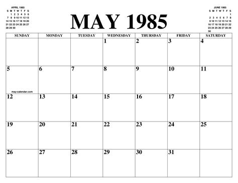 The blank may 1985 calendar with sunday start is a professional classic. View online or print in pdf format. Web world press freedom day. Web may 1985 calendar with usa holidays online. Web may 1985 calendar with holidays and celebrations of the united states. Web free printable calendar for may 1985. Yearly calendar showing months for the year 1985.
