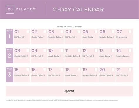 XB Pilates Program Calendars Keep Up with Your Workouts with a